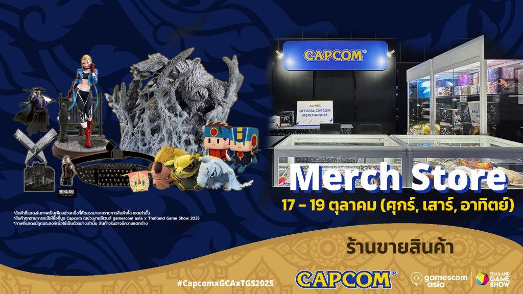 16 – 19 ตุลาคม 2025 ณ ศูนย์การประชุมแห่งชาติสิริกิติ์ (QSNCC) CAPCOM ยืนยันไลน์อัพเกมสุดร้อนแรง พร้อมกิจกรรมบนสเตจ, แขกรับเชิญพิเศษ, แคมเปญสำหรับคอมมูนิตี้ และบูธสินค้าอย่างเป็นทางการตลอดงาน