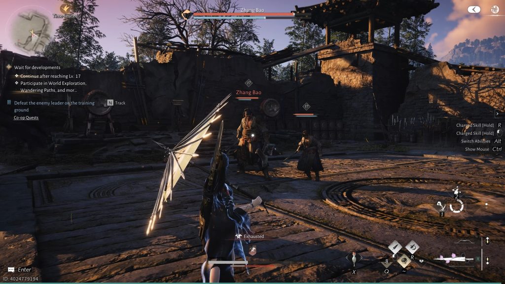ให้เราเดินเข้าไปแล้วเลี้ยวซ้ายจะเป็นลานฝึก โดยจะมีศัตรูอยู่ 3 คน 2 คนจะเป็นตัวธรรมดา อีกตัวจะเป็นมินิบอสชื่อ Zhang Bao ให้จัดการให้เรียบร้อย