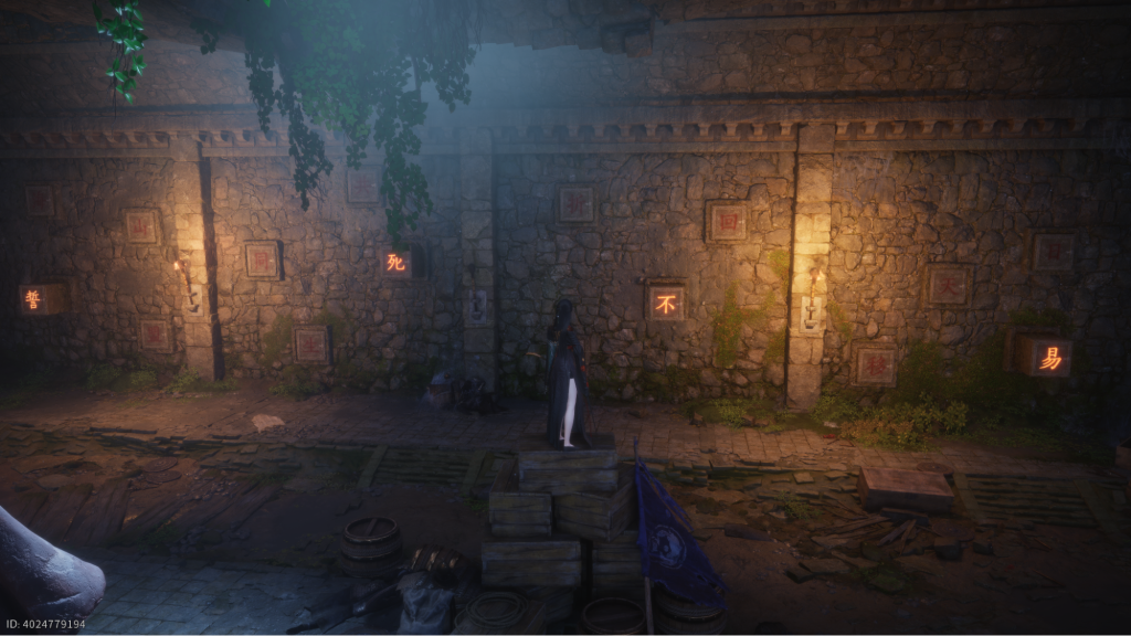 เดินตามทางลงมาเรื่อย ๆ เราจะเจอกับรูปปั้น Yanyun ให้ทำการสักการะบูชา จากนั้นเกมจะให้ไขปริศนาแท่นหินที่มีตัวอักษรเรืองแสง สำหรับใครที่หัวหมุน ก็ดูตามภาพด้านล่างนี้ ให้ดึงกำแพงหินที่มีตัวหนังสือเรียงตามภาพ ตามรูปที่เราแนบมาแบบนี้