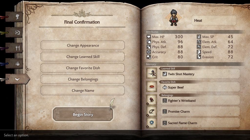 เกมนี้เราจะมีตัวหลัก 1 ตัว คือตัวของเราเอง ที่จะได้สร้างตั้งแต่ตอนเริ่มเกม เลือกทรงผม สีผม เสียง เพศ อาหารที่ชอบ สกิล และของเริ่มต้นติดตัวได้