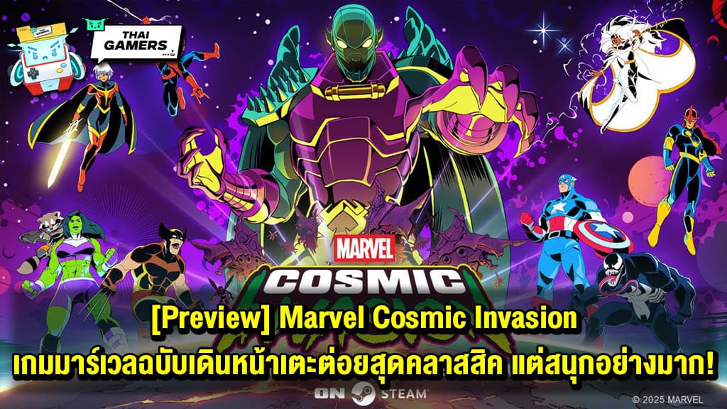 DOTEMU ค่ายเกมขาประจำที่ชอบพัฒนาเกมอินดี้ Retro เพื่อให้เด็กหนวดรุ่นเราได้หวนคืนสู่ความทรงจำเก่า ๆ คราวนี้เขาขอหยิบลิขสิทธิ์ของ Marvel มาทำกันบ้าง และนี่คือ Marvel Cosmic Invasion เกมสไตล์ Beat e’m up เดินหน้าเตะต่อยแบบคลาสสิค ซึ่งตอนนี้ตัวเกมมีปล่อย Demo ออกมาให้ได้ลองเล่นกันแล้ว และ Thai Gamers เราก็ไปลองมาแล้วด้วย!