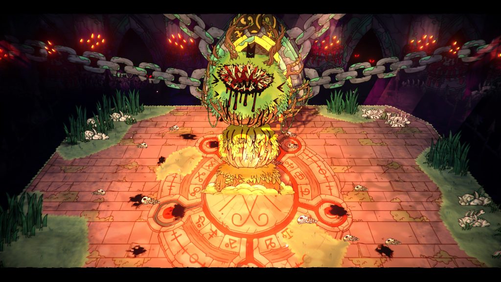 แม้งานภาพจะเป็นอาร์ทแบบกราฟิกน่ารัก ๆ แต่ในความน่ารักนั้น แฝงด้วยความโหด ดิบ เลือดสาดอยู่บ้าง แค่มันไม่นำเสนอออกมาให้เราเห็นกันตรง ๆ แต่สมมติว่าเราเล่นไปถึงจุดหนึ่งแล้ว เราจะเห็นว่าเราสามารถนำ Poop มาปรุงอาหารเพื่อบังคับให้สมาชิกลัทธิกินได้ หรือการตายของสมาชิกลัทธิอาจส่งผลให้สมาชิกคนอื่น ๆ ก่อหวอดได้ เมื่อนั้นคุณจะเริ่มเห็นแน่นอนว่ามันน่าสนใจขนาดไหน