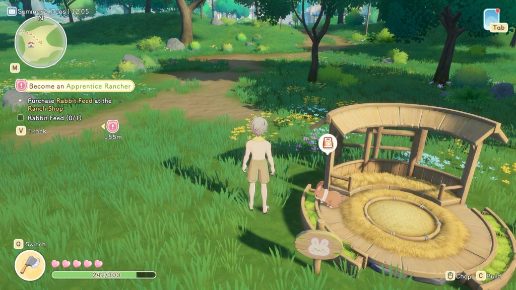 ระบบการปลูกผักทำฟาร์มจะคล้ายกับเกมอื่น คือเราต้องขุดหน้าดินด้วย Hoe จากนั้นหว่านเมล็ดและรดน้ำต้นไม้ ส่วนการเลี้ยงสัตว์ ใน Demo จะมีกระต่ายให้เลี้ยง และสามารถเซ็ตระบบให้อาหารอัตโนมัติได้ และเมื่อมาเล่นกับน้องสัตว์ที่เราเลี้ยงไว้บ่อย ๆ ค่าสนิทสนมก็จะเพิ่มขึ้น เป็นการเพิ่มผลผลิตให้มากขึ้นด้วยได้นั่นเอง