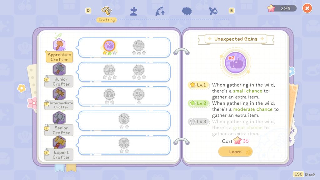 แต่ส่วนที่สำคัญเลยก็คือเรื่องของสกิลสายอาชีพต่าง ๆ ของผู้เล่น โดยในเกมนี้จะเรียกว่าระบบ Workpedia หรือคู่มือการทำงานที่เกมนี้จะแบ่งออกเป็น 5 ด้าน (อ้างอิงจาก Demo)