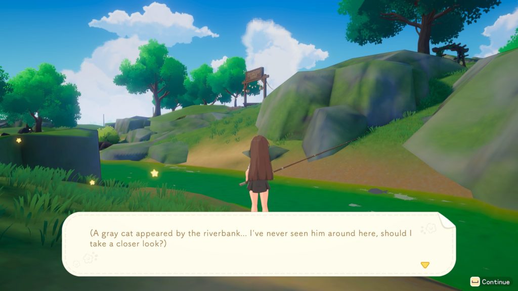 2. หาตกปลาในแม่น้ำรอบๆบ้าน แล้วเราจะสุ่มเจอเหตุการณ์เจ้าเหมียวลอยน้ำมา (ถ้ายังไม่เจอวันนี้ วันอื่นก็มาตกไปเรื่อยๆ)