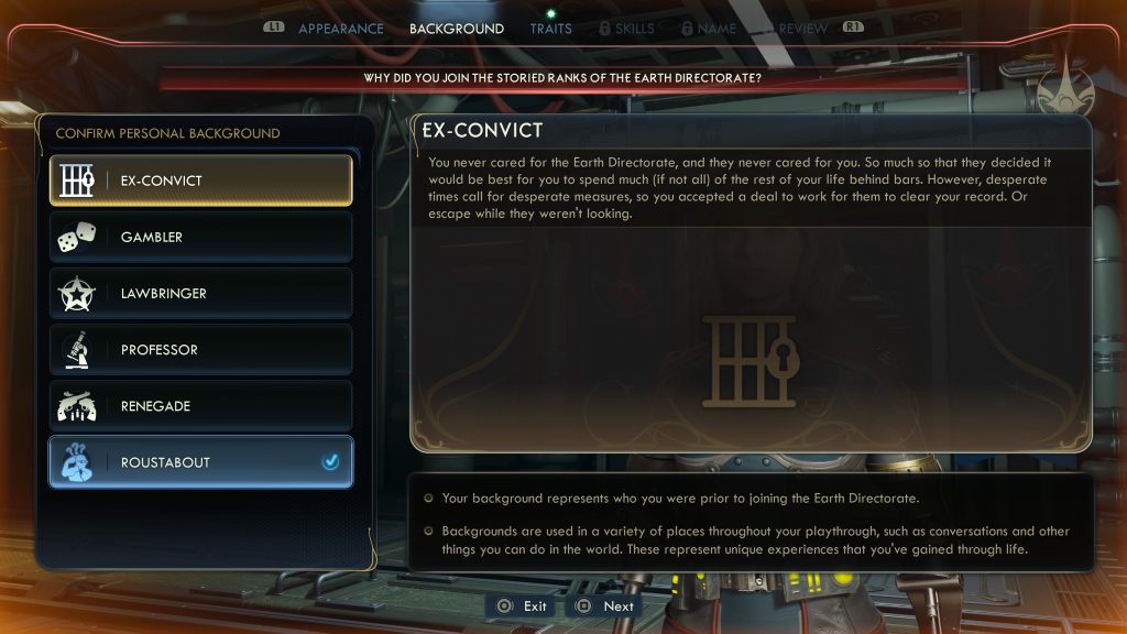 และยังกำหนดประวัติของตัวละครเราได้ด้วย เช่น เป็นนักโทษเก่า